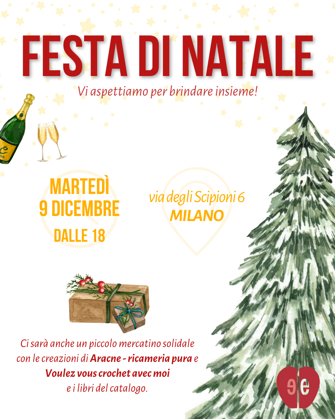 Sarà possibile acquistare i libri del catalogo e rinnovare la tessera soci* per l'anno 2026. Il mercatino solidale quest'anno include anche creazioni di Voulez Vous Crochet Avec Moi e Aracne - ricameria pura.