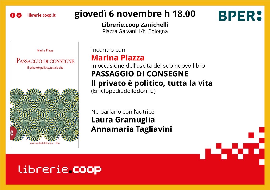 Presentazione di Passaggio di consegne. Annamaria Tagliavini e Laura Gramuglia conversano con l'autrice Marina Piazza.