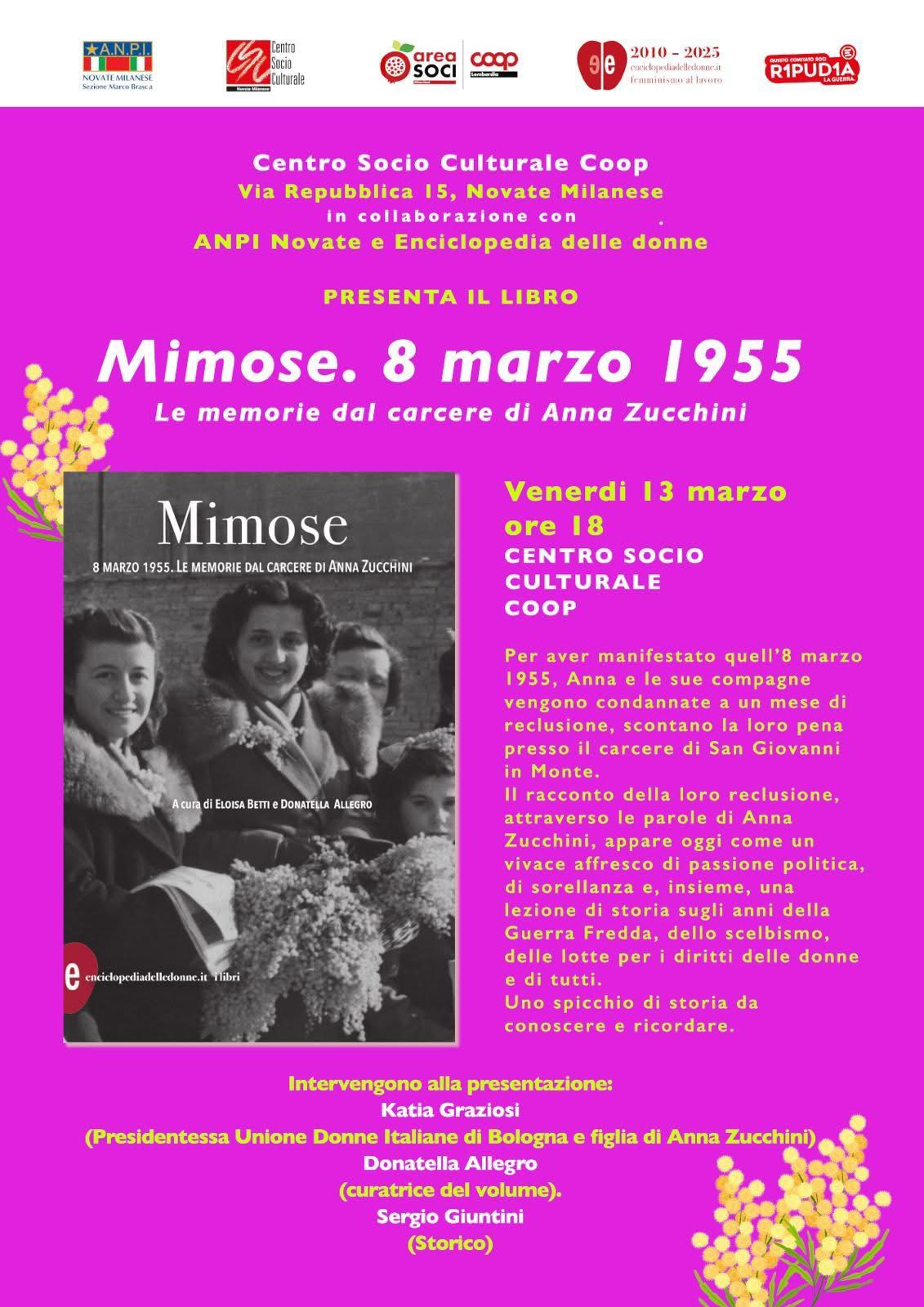 Presentazione di Mimose in occasione della Giornata Internazionale della Donna. Saranno presenti Donatella Allegro e Katia Graziosi in dialogo con Sergio Giuntini (presidente ANPI Novate).